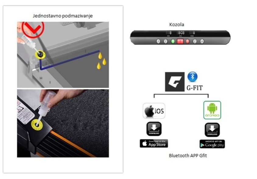 Zmogljiv 1,5 HP motor zagotavlja gladko delovanje pri vseh hitrostih (1-10 km/h) - od lahke hoje do intenzivnega teka. 3 prednastavljeni programi + 12 podprogramov vam omogočajo raznolike treninge za vse nivoje pripravljenosti. Bluetooth povezava z aplikacijo GFit dodatno obogati vašo vadbo.